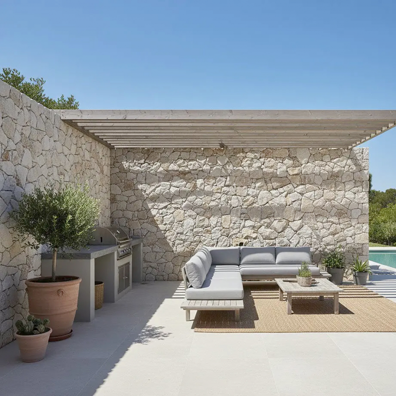 Le Parement Ibiza est une pierre de revêtement à pose irrégulière, appartenant à la famille des grès.