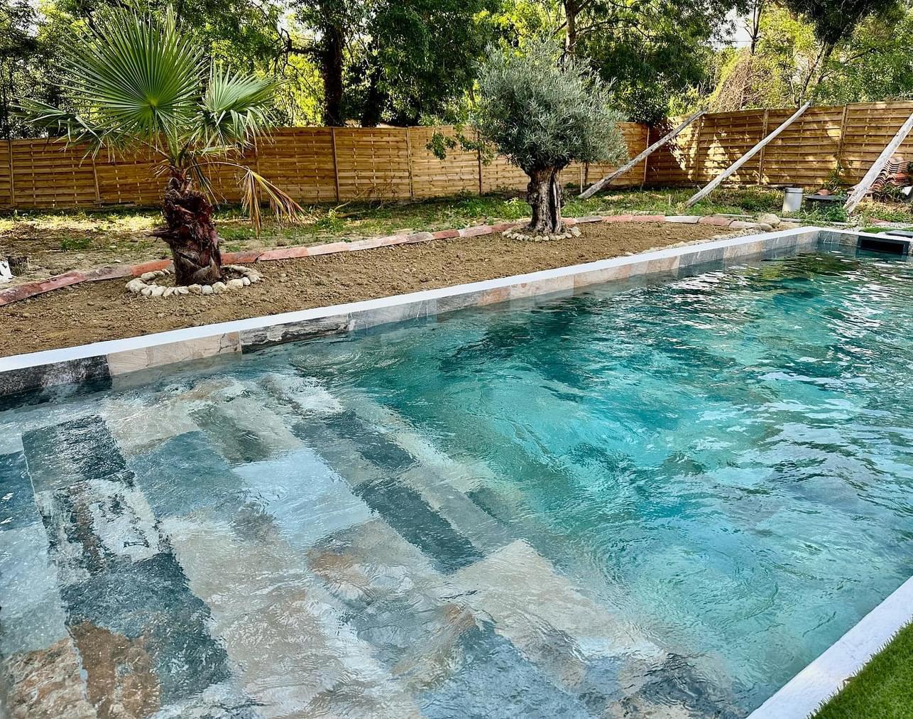 L'esthétisme et le cachet de la pierre mais sans risques pour la piscine.