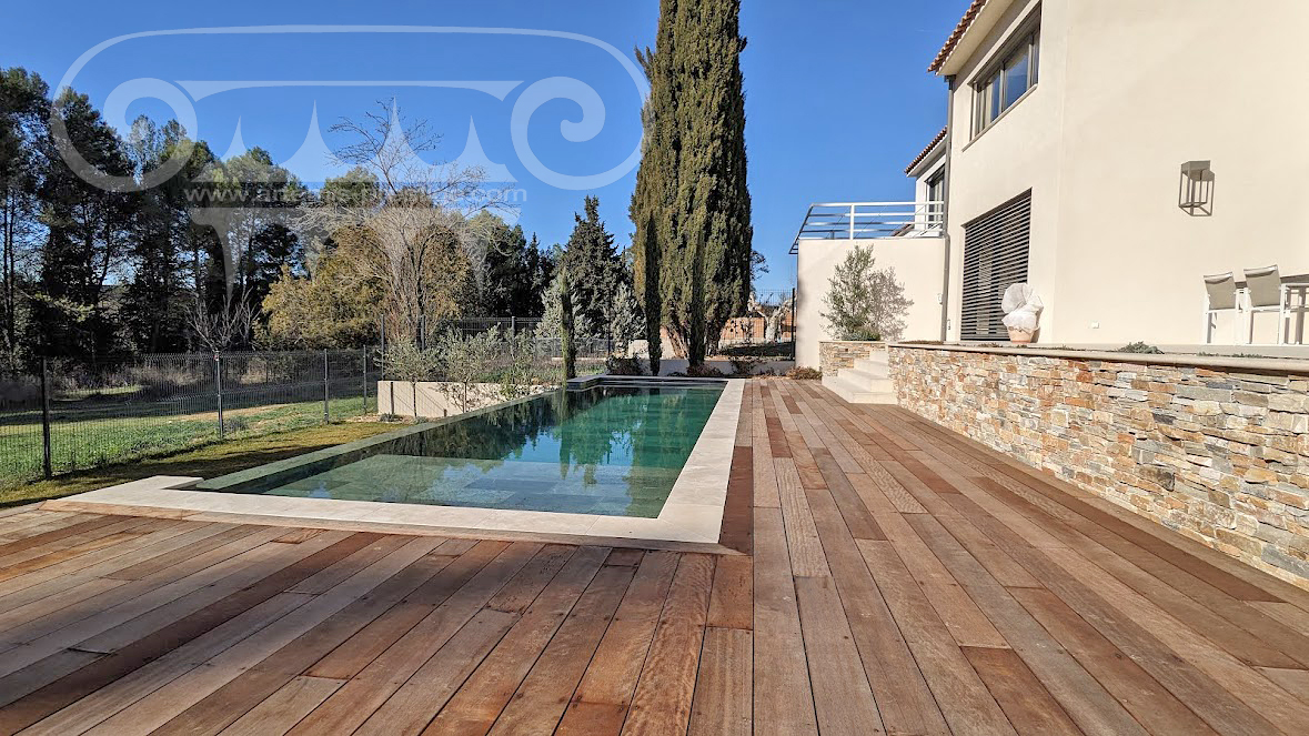 L'esthétisme et le cachet de la pierre mais sans risques pour la piscine.