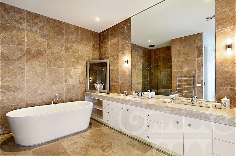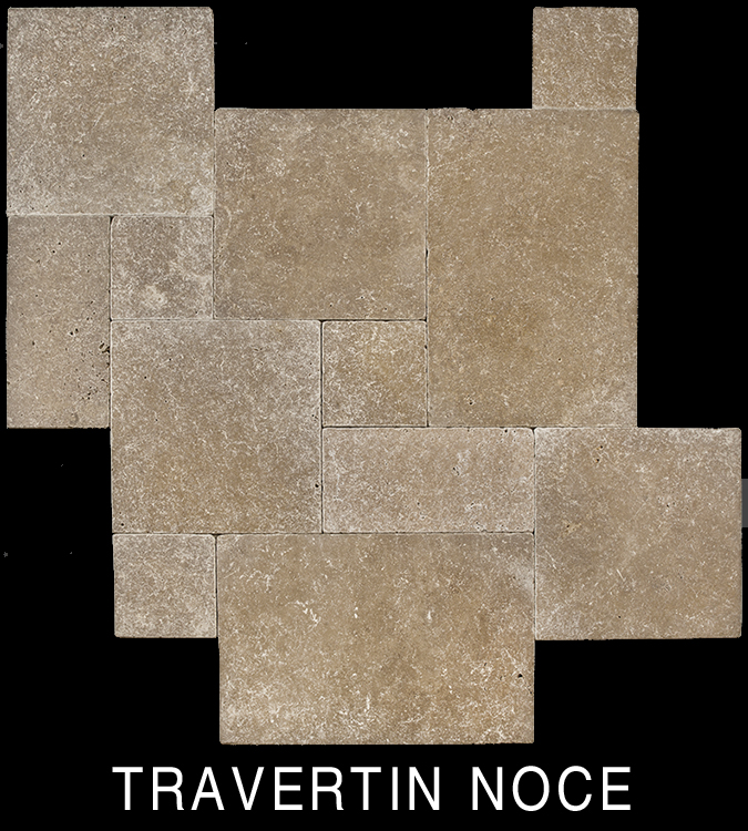 Le travertin Noce peut être utilisé avec du travertin light ou medium pour contraster ou créer un effet damier.